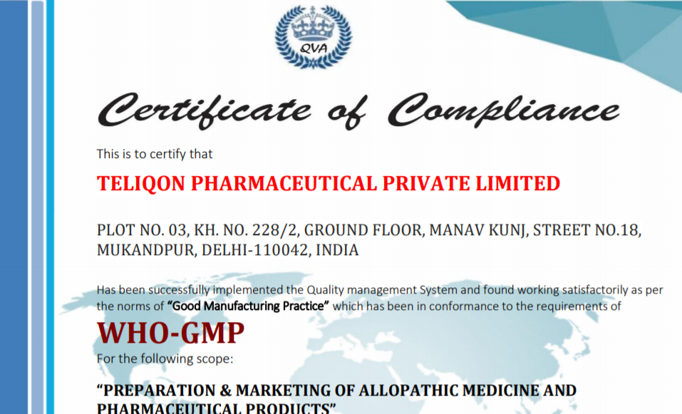 Teliqon Pharmaceutical Pvt. Ltd is one of the leading Indian Pharma company. Based at New Delhi, India. The company has products in therapeutic areas ranging from Antibiotics, cough expectorant, PPI, multi vitamins, multiminerals, painkillers etc.