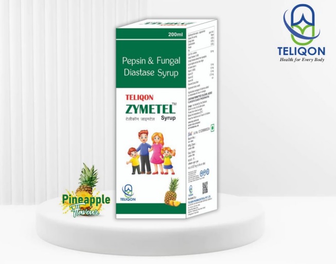 Zymetel syrup: Composition each 5 ml contains-fungal diastase-50mg+pepsin-10mg+vitB1 1.5mg+vitB2 1.5mg+vitB6 2.75mg